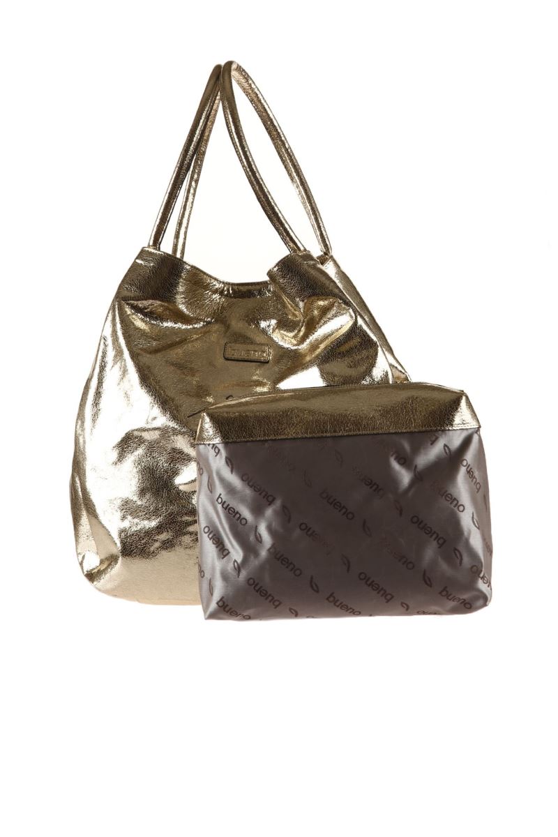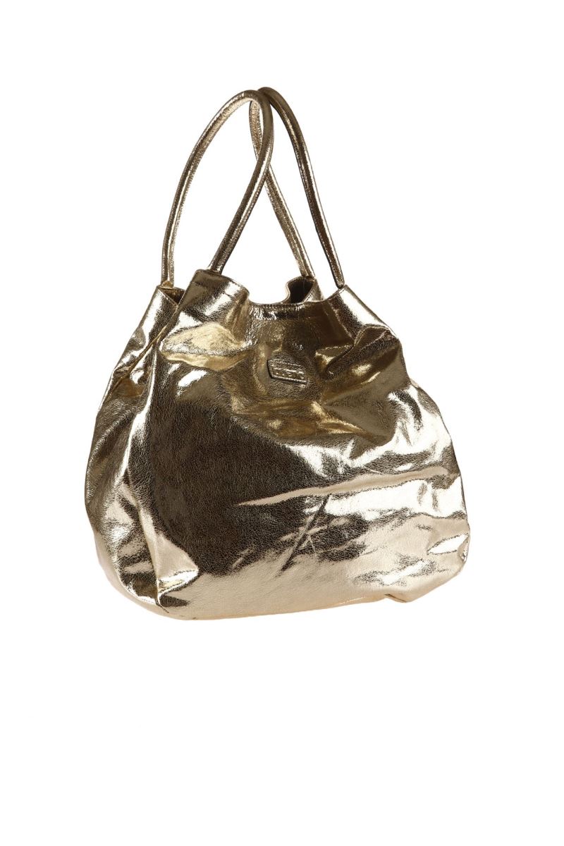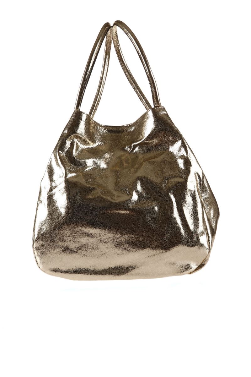ALTIN AÇIK PARLAK DERİ KADIN OMUZ ÇANTASI