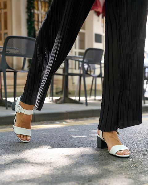 BEYAZ DERİ KADIN TOPUKLU SANDALET