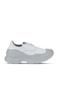 BEYAZ GRİ DERİ KADIN DOLGU TOPUKLU SPOR AYAKKABI