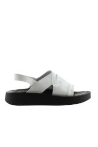BEYAZ SİYAH DERİ KADIN DÜZ SANDALET