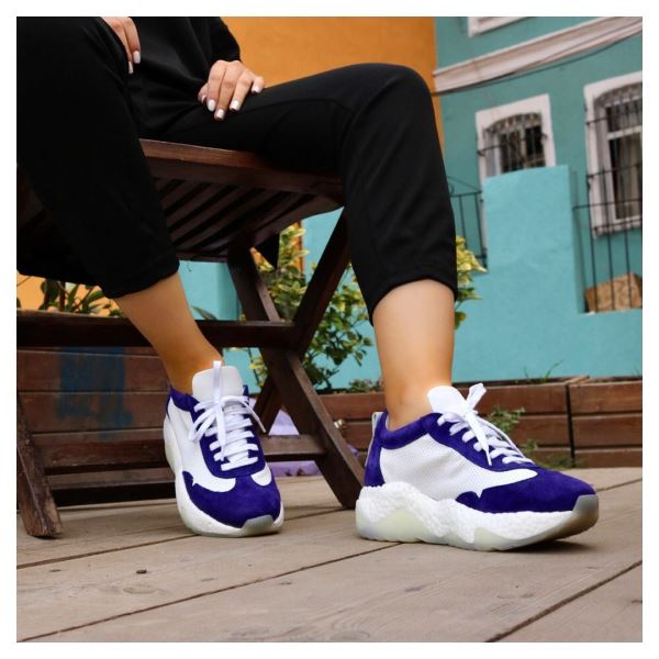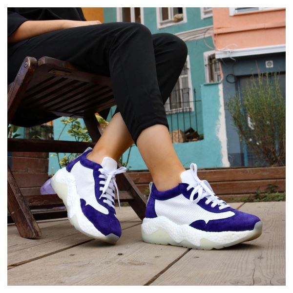 BEYAZ TURUNCU DERİ KADIN DOLGU TOPUKLU SPOR AYAKKABI