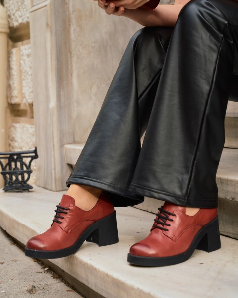 BORDO DERİ KADIN TOPUKLU AYAKKABI