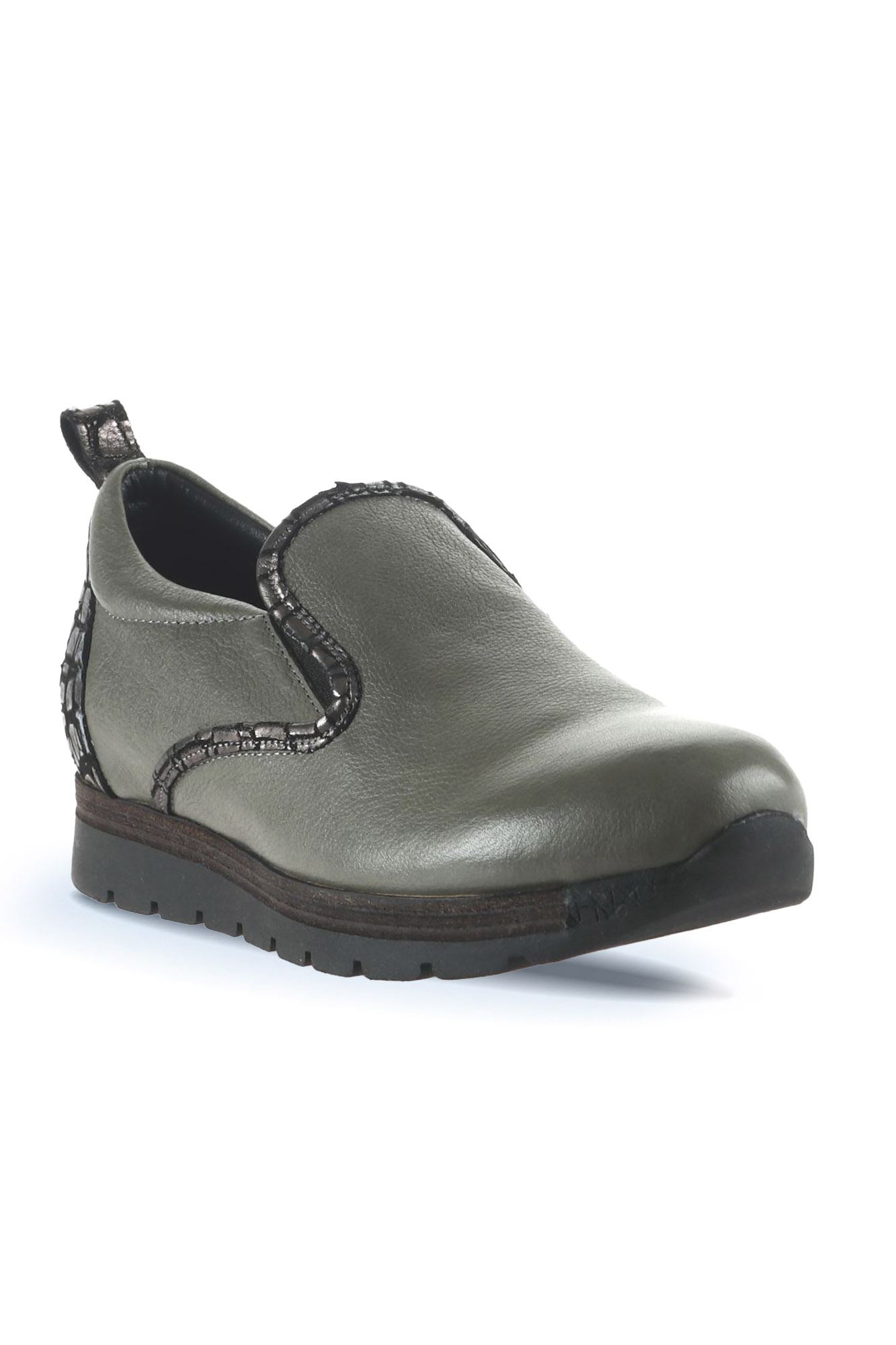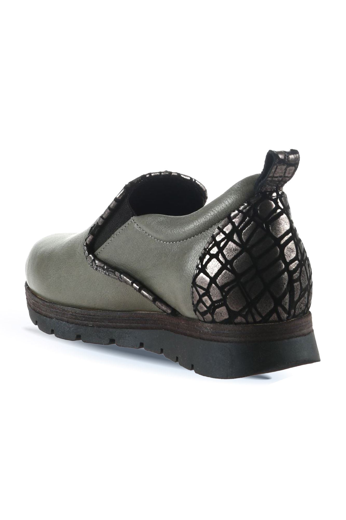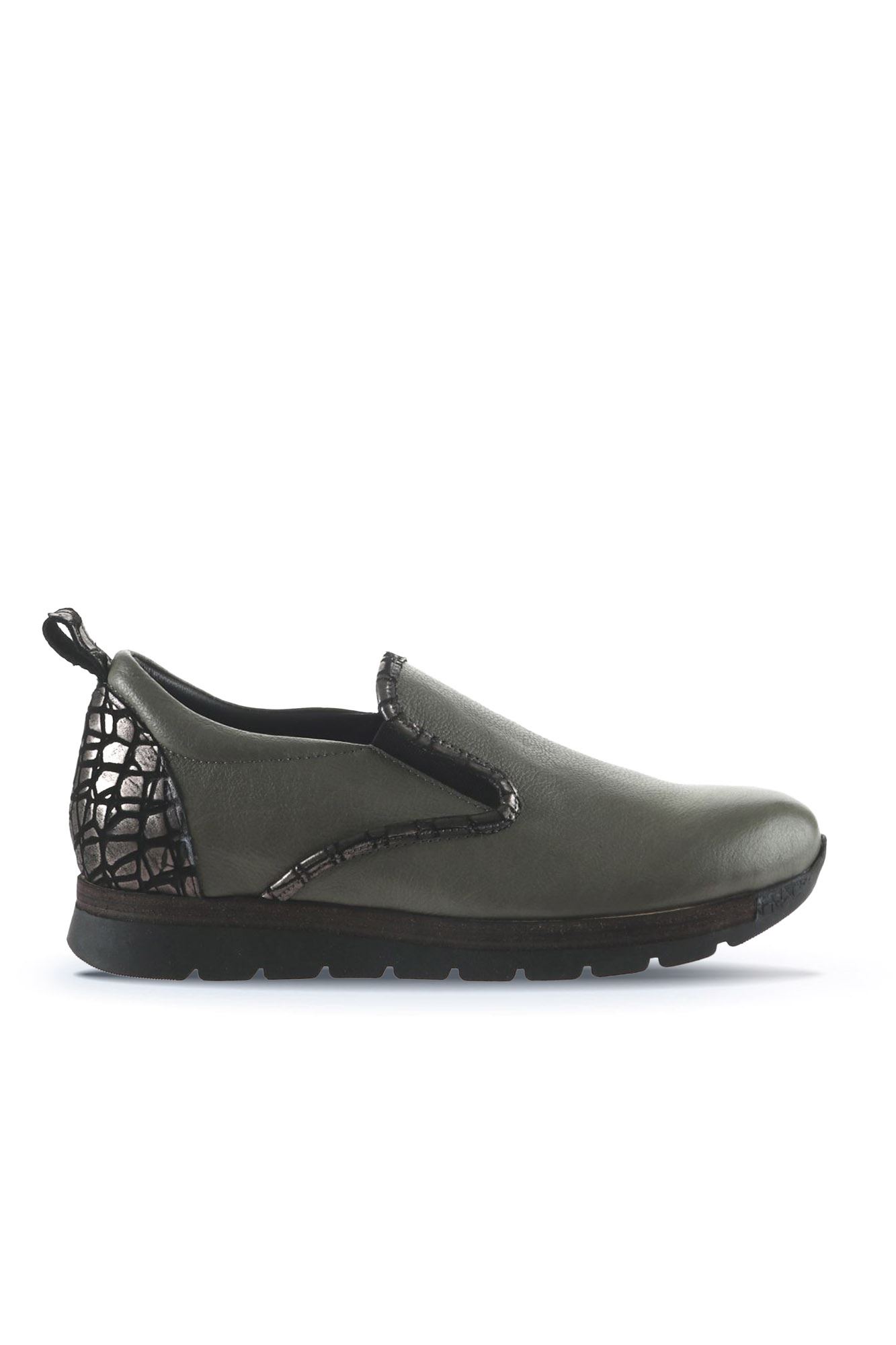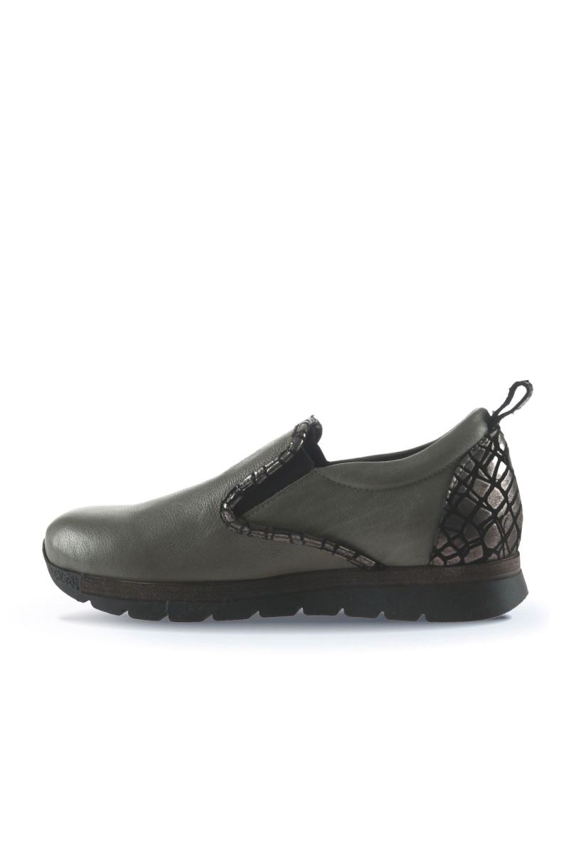 GRİ DERİ KADIN DÜZ AYAKKABI