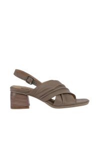 GRİ DERİ KADIN TOPUKLU SANDALET