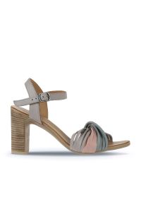 GÜMÜŞ DERİ KADIN TOPUKLU SANDALET