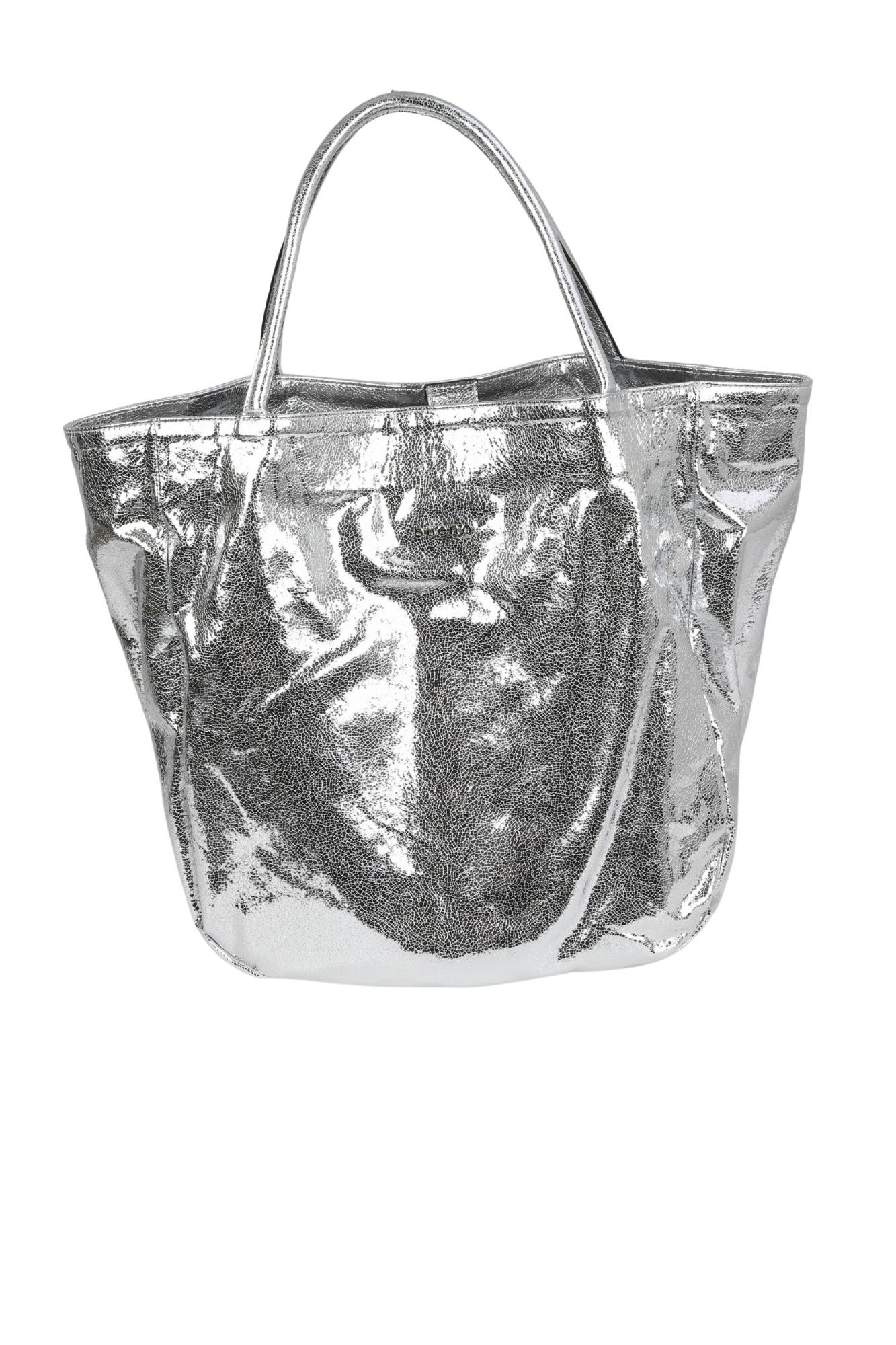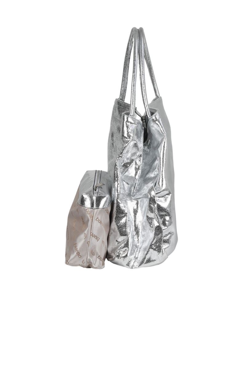 GÜMÜŞ PARLAK DERİ KADIN OMUZ ÇANTASI