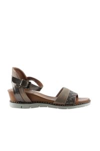 HAKİ PARLAK DERİ KADIN DOLGU TOPUKLU SANDALET