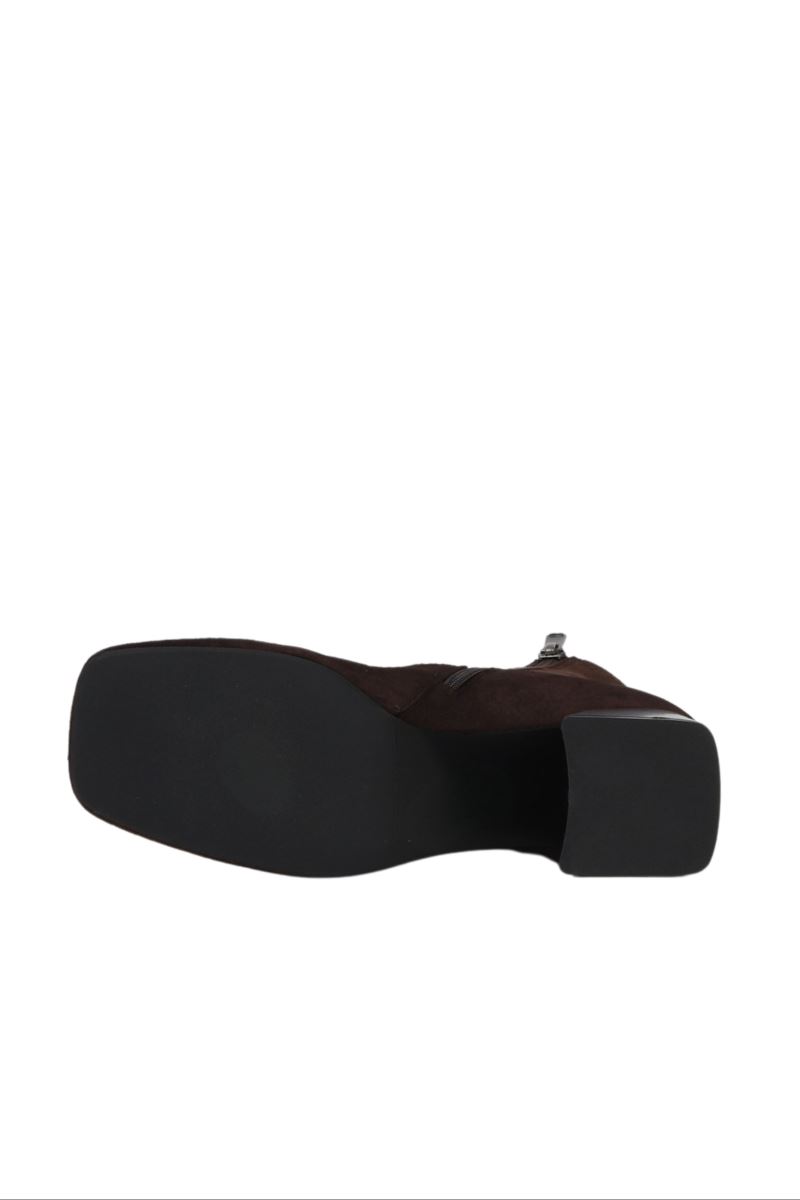 KAHVERENGİ SÜET-STREÇ KADIN TOPUKLU BOT