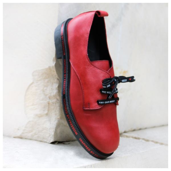KIRMIZI DERİ KADIN DÜZ AYAKKABI