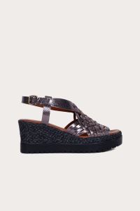 KURŞUN PARLAK DERİ KADIN DOLGU TOPUKLU SANDALET