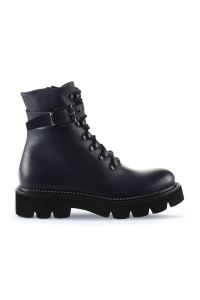 LACİVERT DERİ KADIN DÜZ BOT