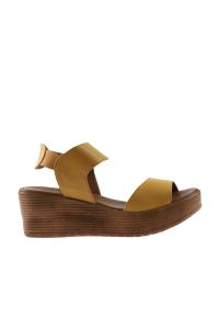 SARI DERİ KADIN DOLGU TOPUKLU SANDALET