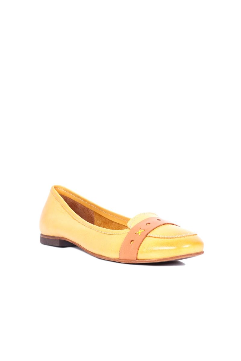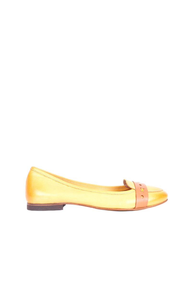 SARI TABA DERİ KADIN AZ TOPUKLU AYAKKABI