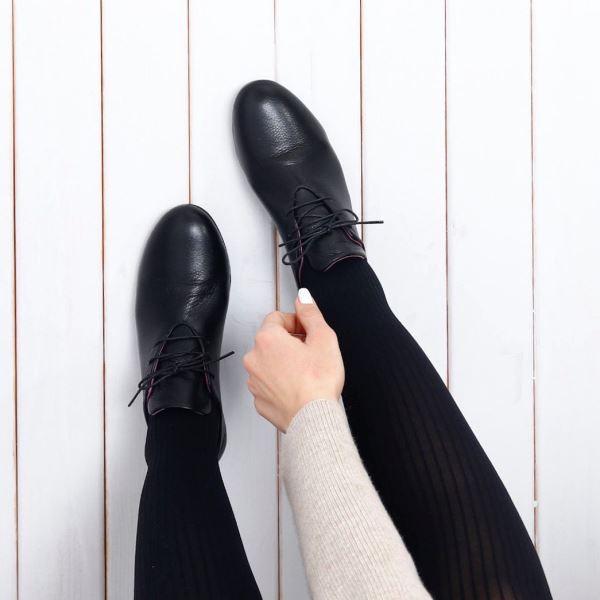 SİYAH DERİ KADIN AZ TOPUKLU AYAKKABI
