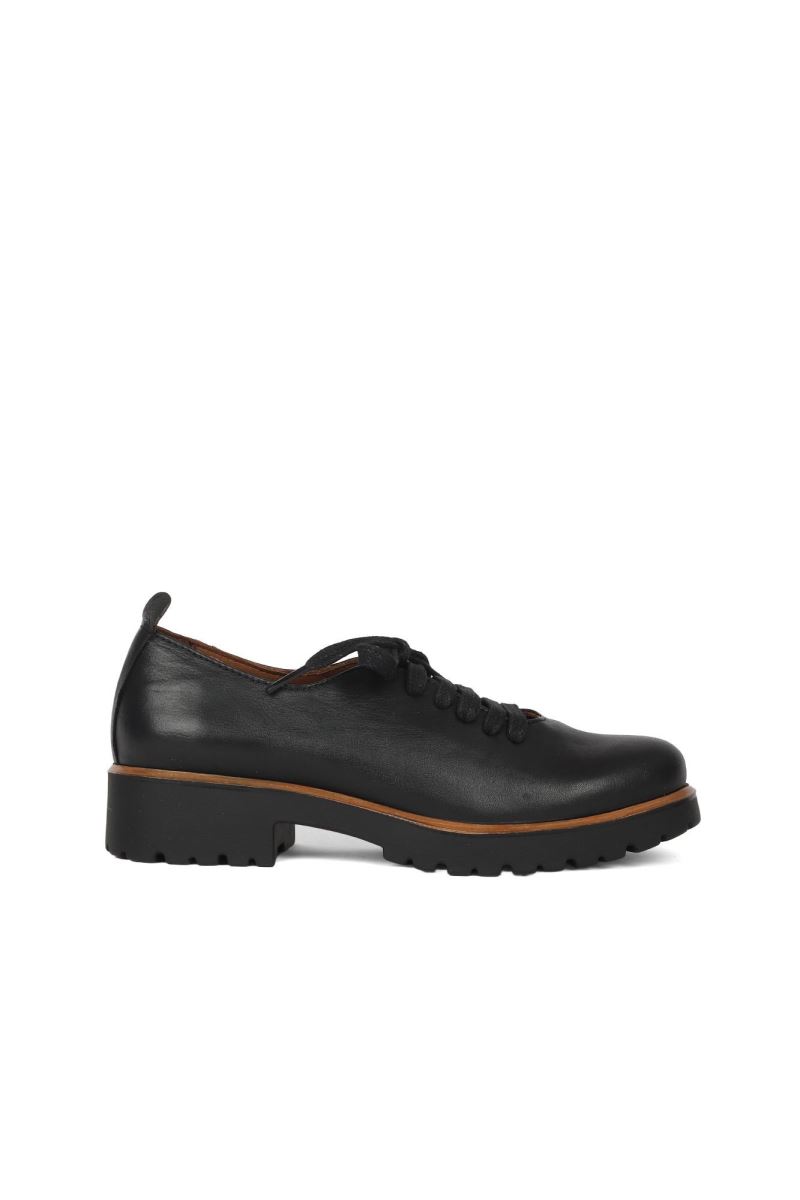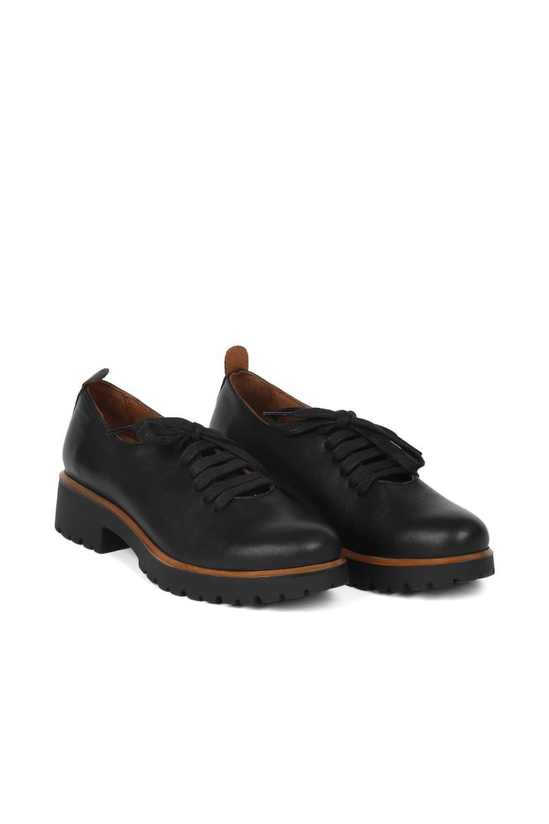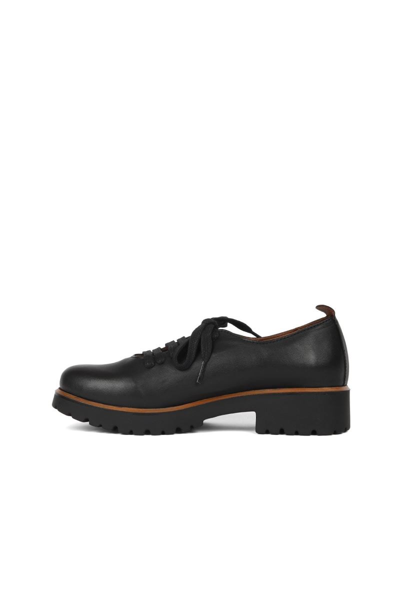 SİYAH DERİ KADIN DOLGU TOPUKLU AYAKKABI