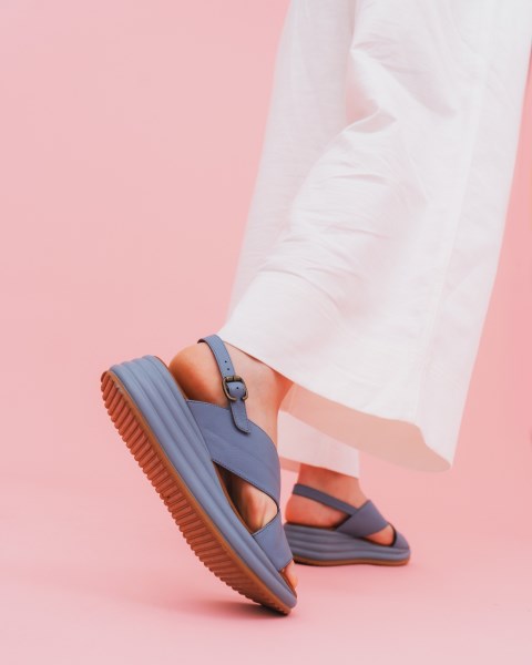 SİYAH DERİ KADIN DOLGU TOPUKLU SANDALET
