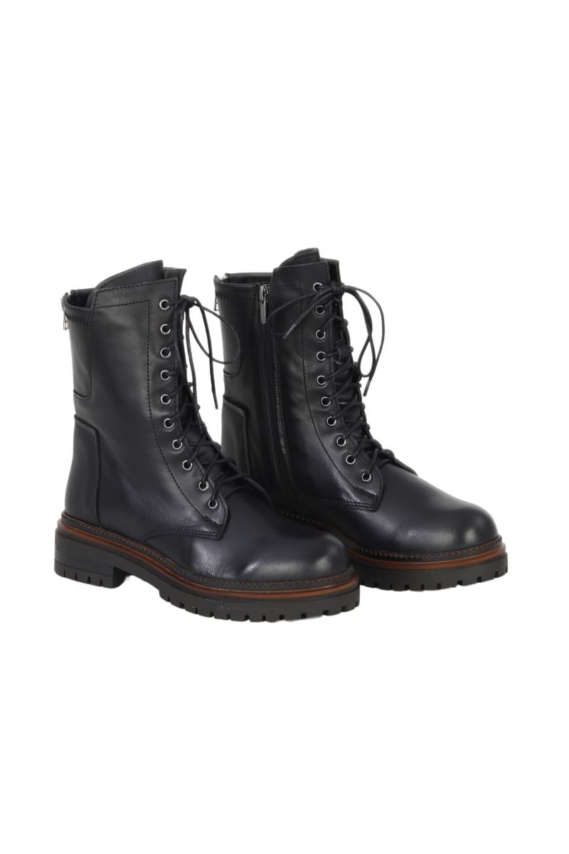Bağcıklı tasarımı ve dayanıklı thermo tabanı ile konfor sunan bu deri bot, 3 cm topuğu ve dar kalıbı ile günlük kullanıma uygun modern bir stil sağlar.