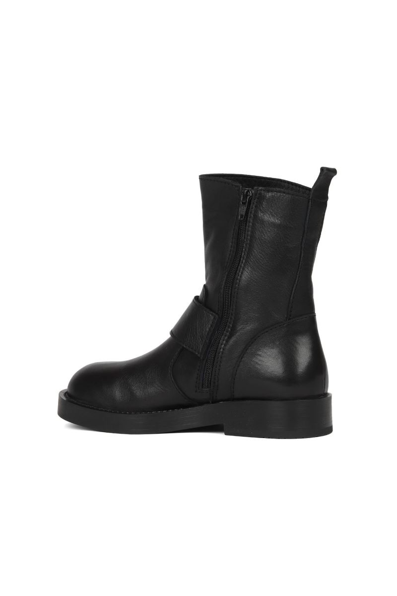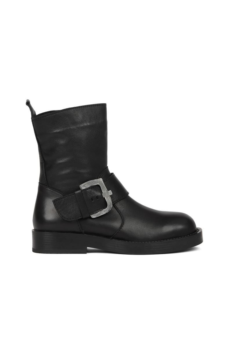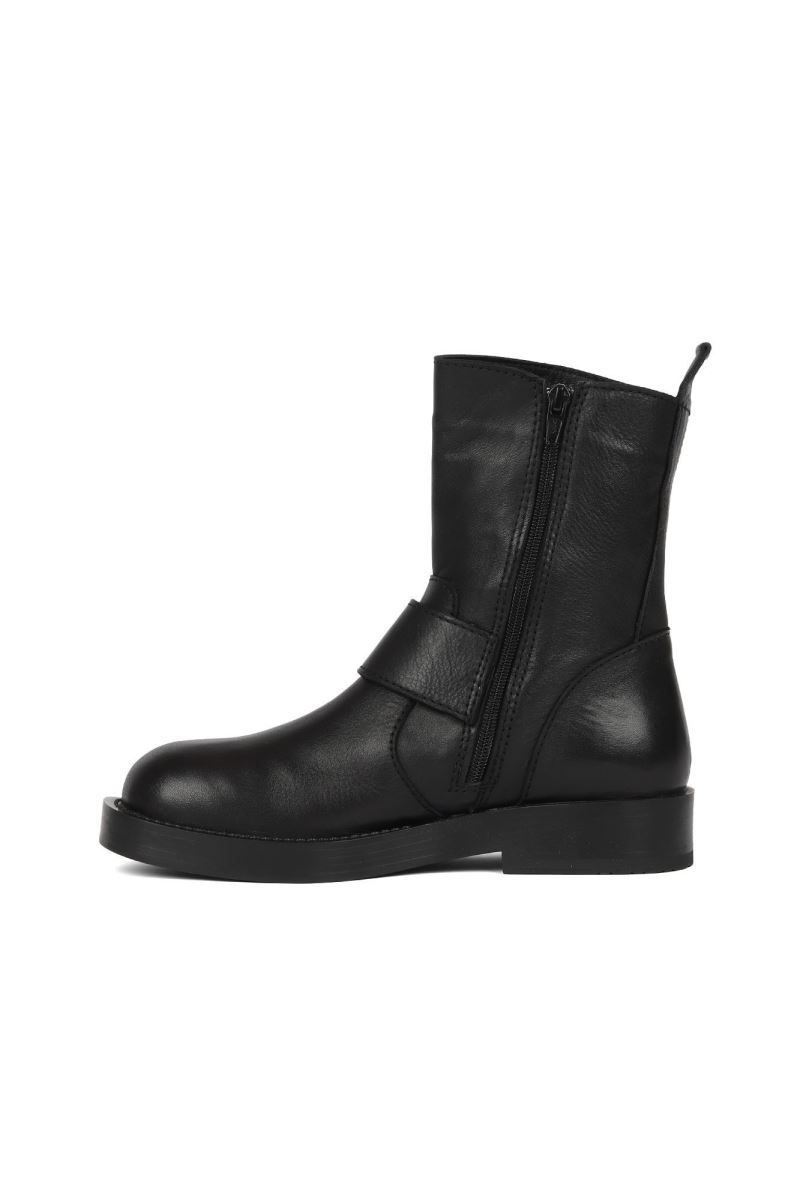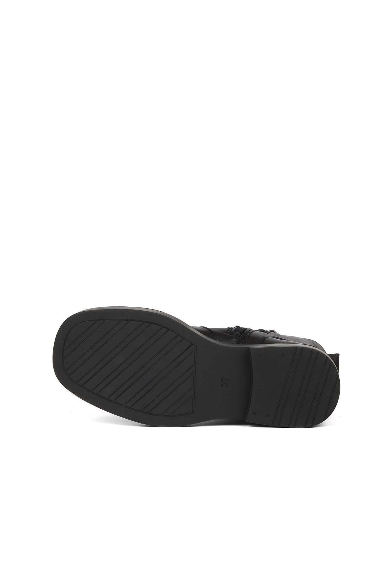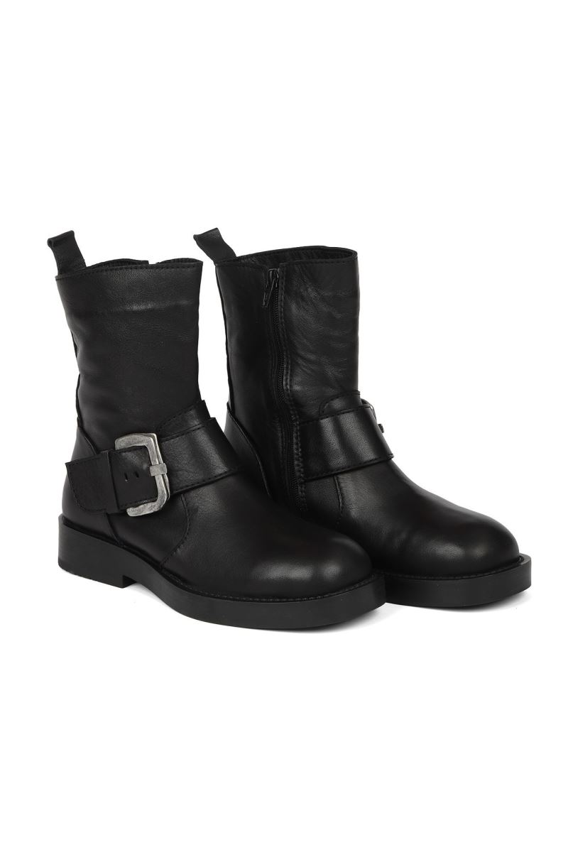 SİYAH DERİ KADIN DÜZ BOT