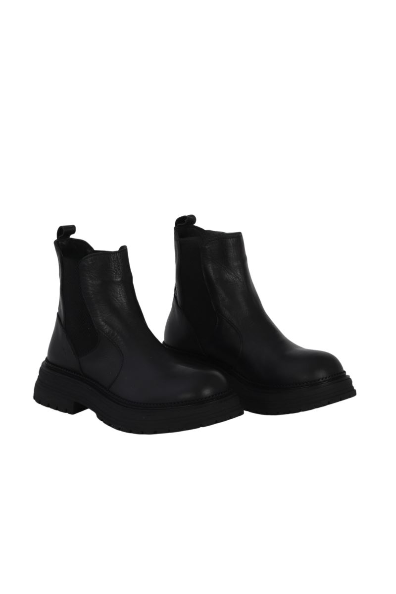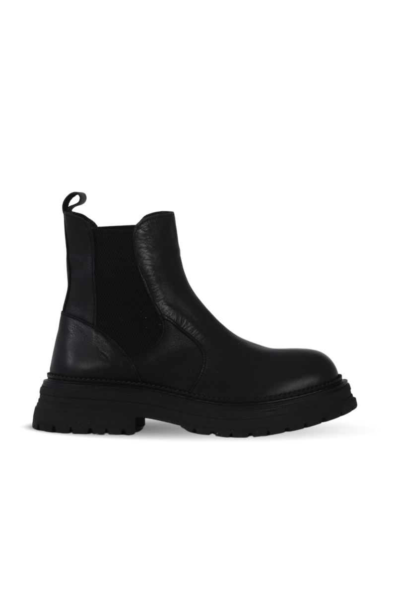 SİYAH DERİ KADIN DÜZ BOT