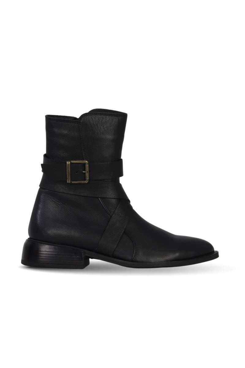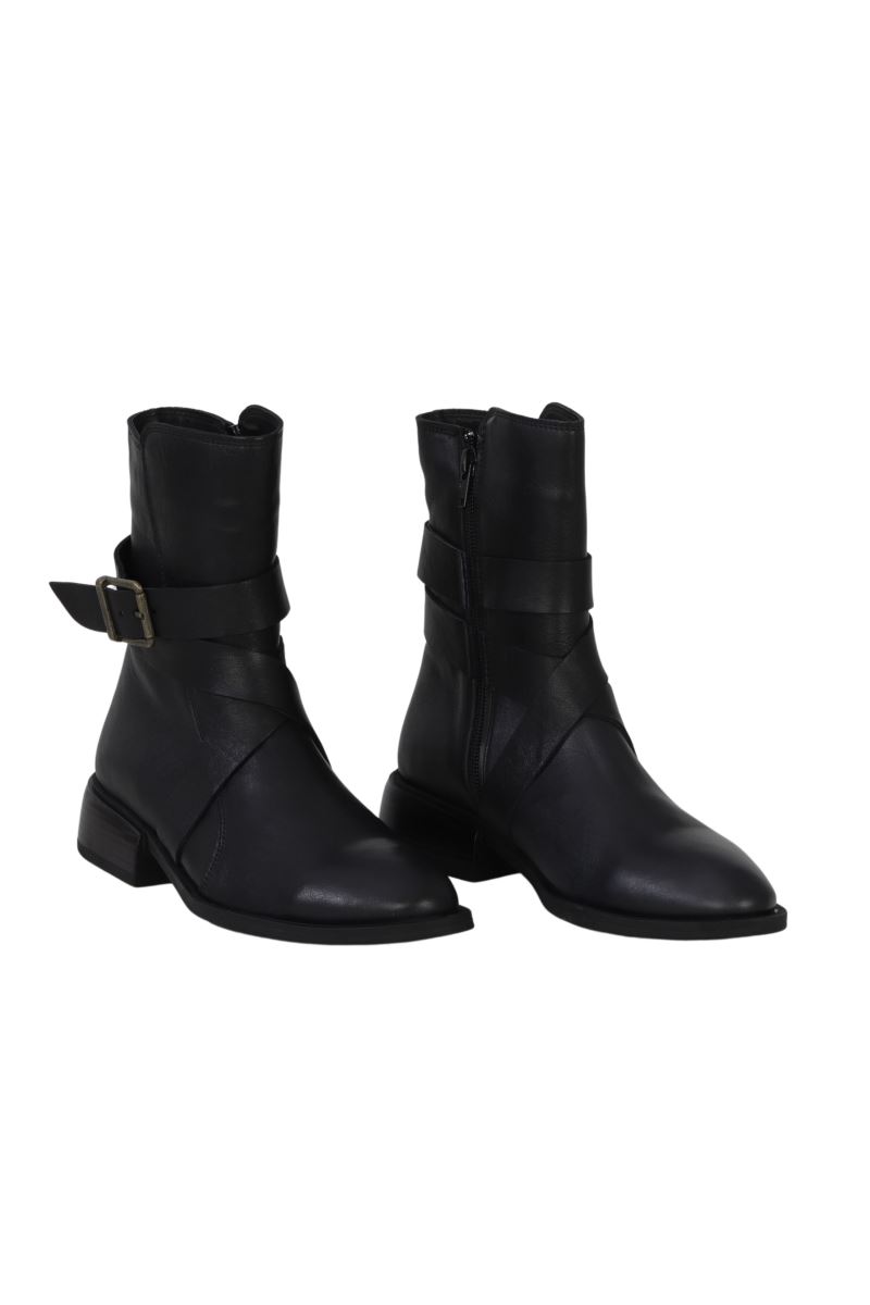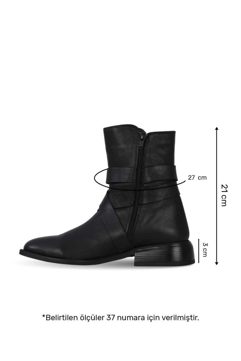 SİYAH DERİ KADIN DÜZ BOT
