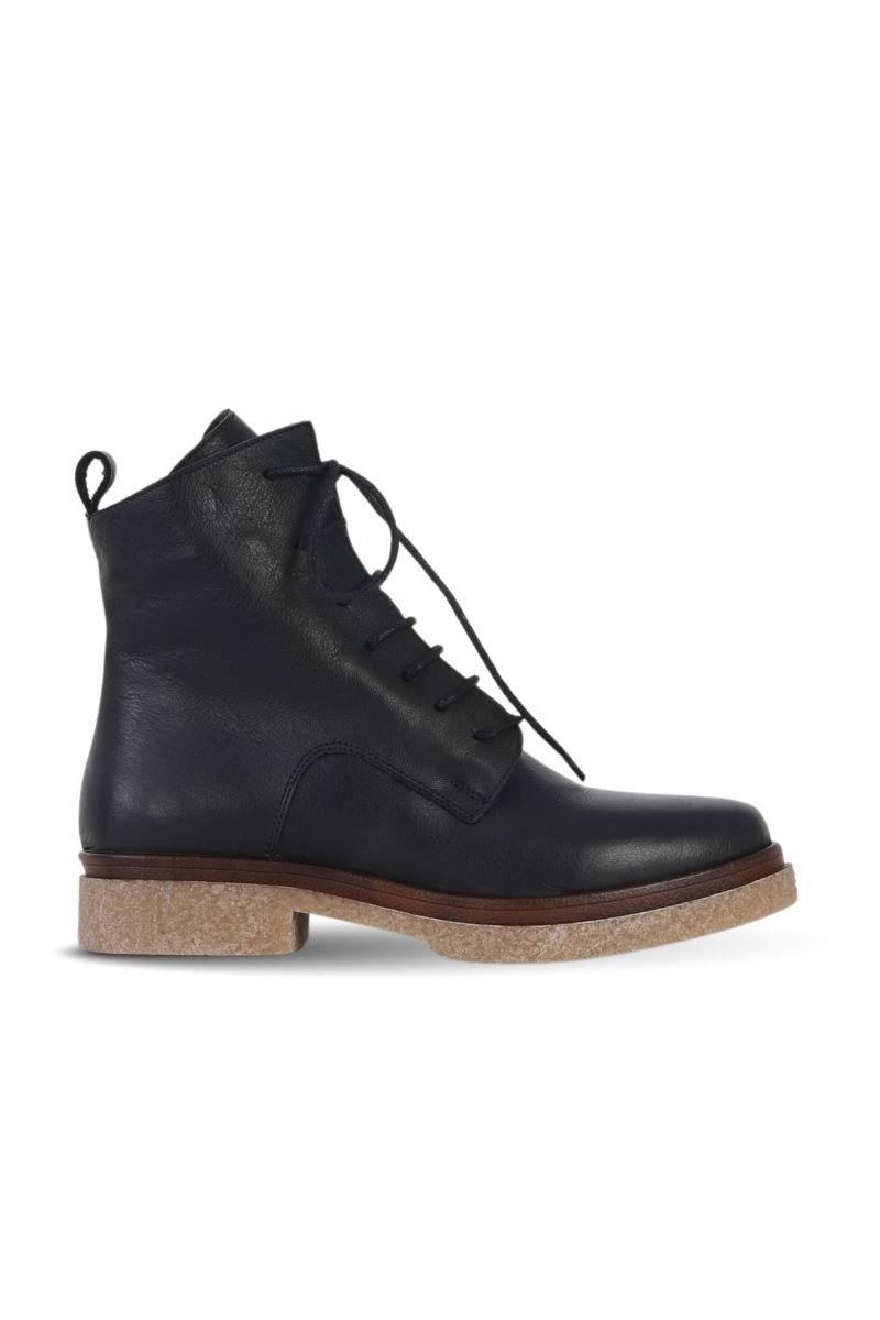 SİYAH DERİ KADIN DÜZ BOT