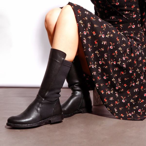 SİYAH DERİ KADIN DÜZ ÇİZME