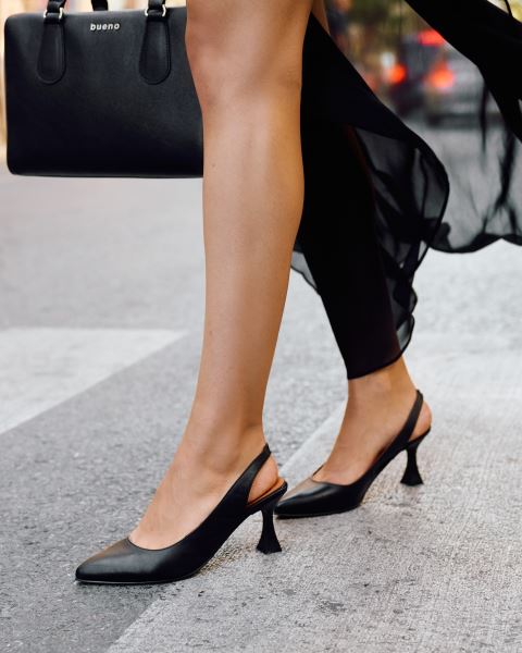 SİYAH DERİ KADIN TOPUKLU AYAKKABI