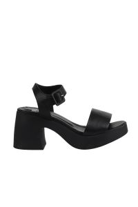 SİYAH DERİ KADIN TOPUKLU SANDALET