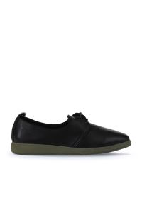 SİYAH HAKİ DERİ KADIN DÜZ AYAKKABI