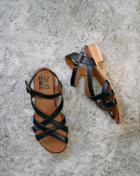 SİYAH KHV-BEJ DERİ KADIN AZ TOPUKLU SANDALET