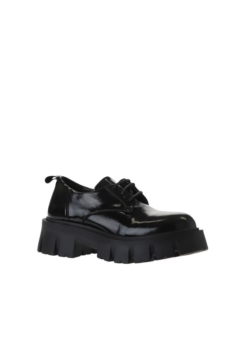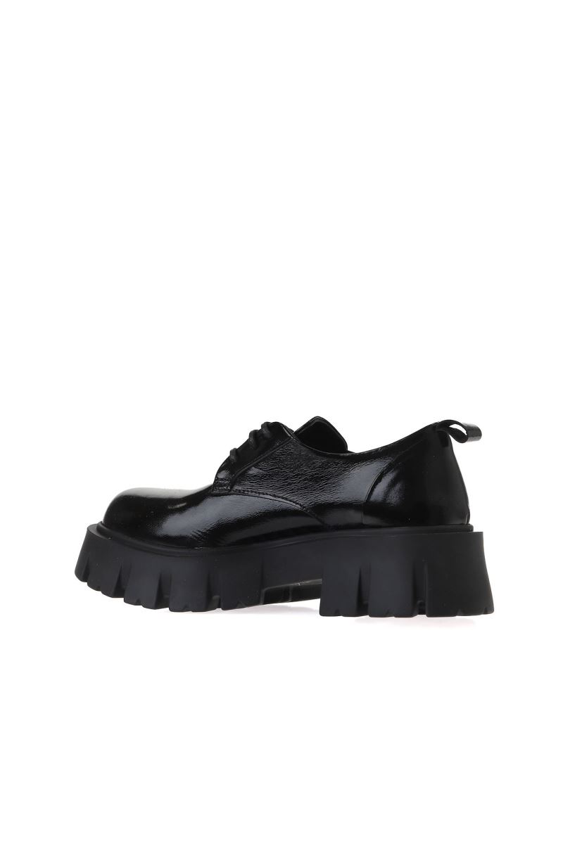 SİYAH KIRIŞIK RUGAN KADIN DOLGU TOPUKLU AYAKKABI