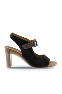 SİYAH VİZON DERİ KADIN TOPUKLU SANDALET