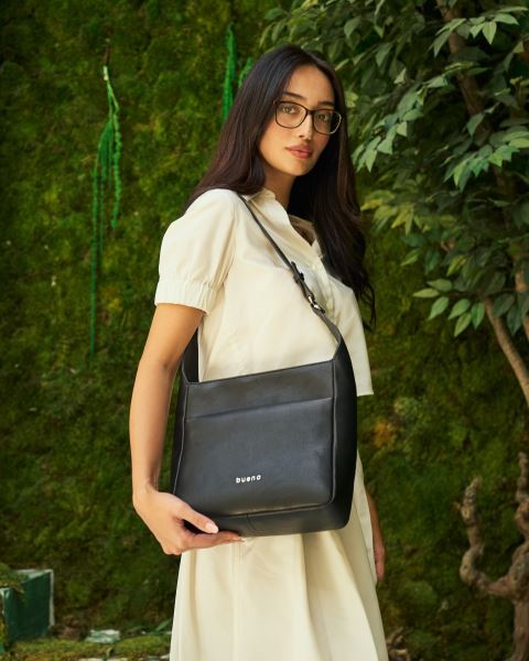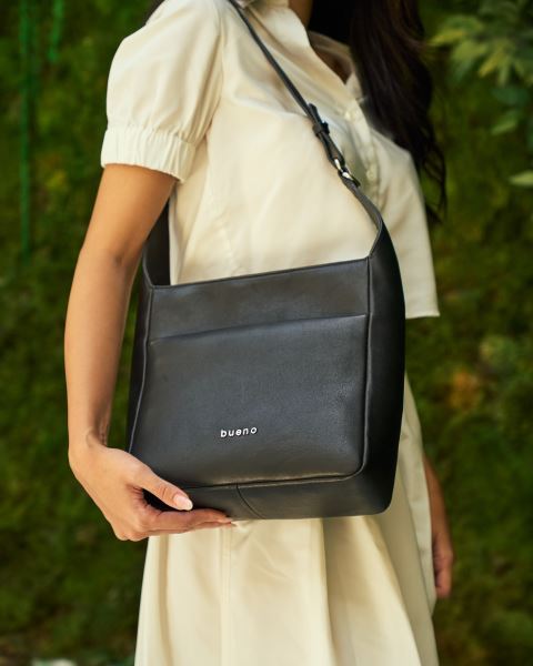 TABA SİYAH DERİ KADIN OMUZ ÇANTASI