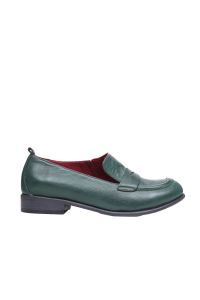 YEŞİL KOYU DERİ KADIN AZ TOPUKLU AYAKKABI